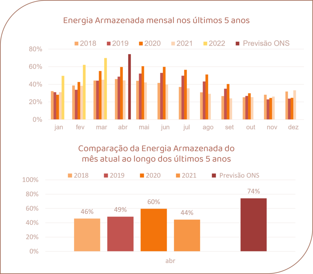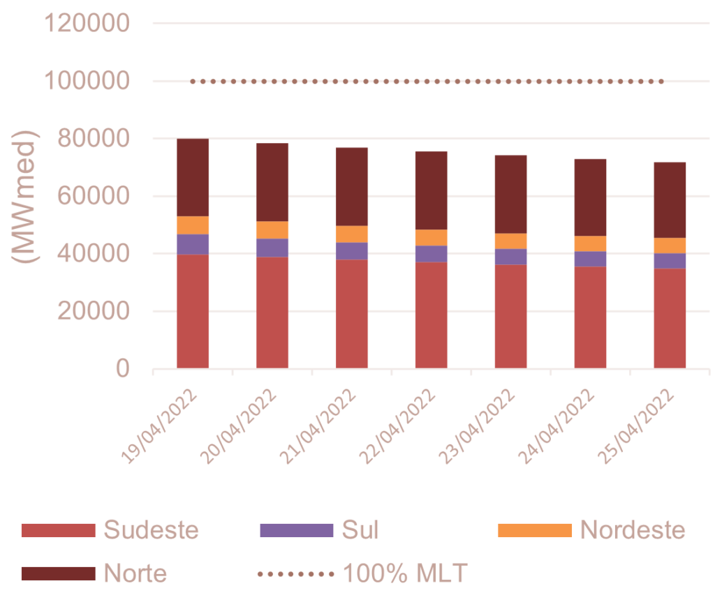 Para abril de 2022, espera-se que as afluências fechem em torno de 87% da MLT para o sistema.