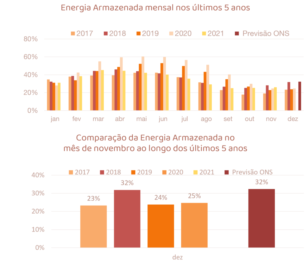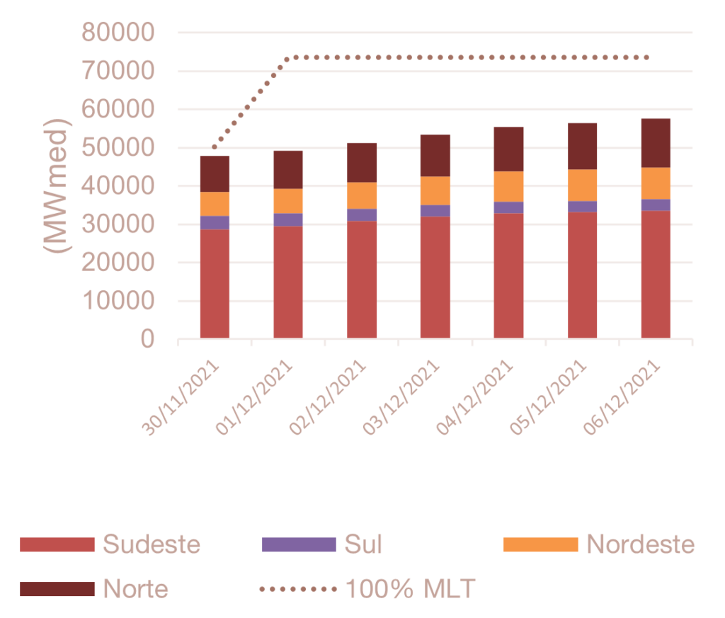 Para dezembro de 2021, espera-se que as afluências fechem em torno de 106% da MLT para o sistema.