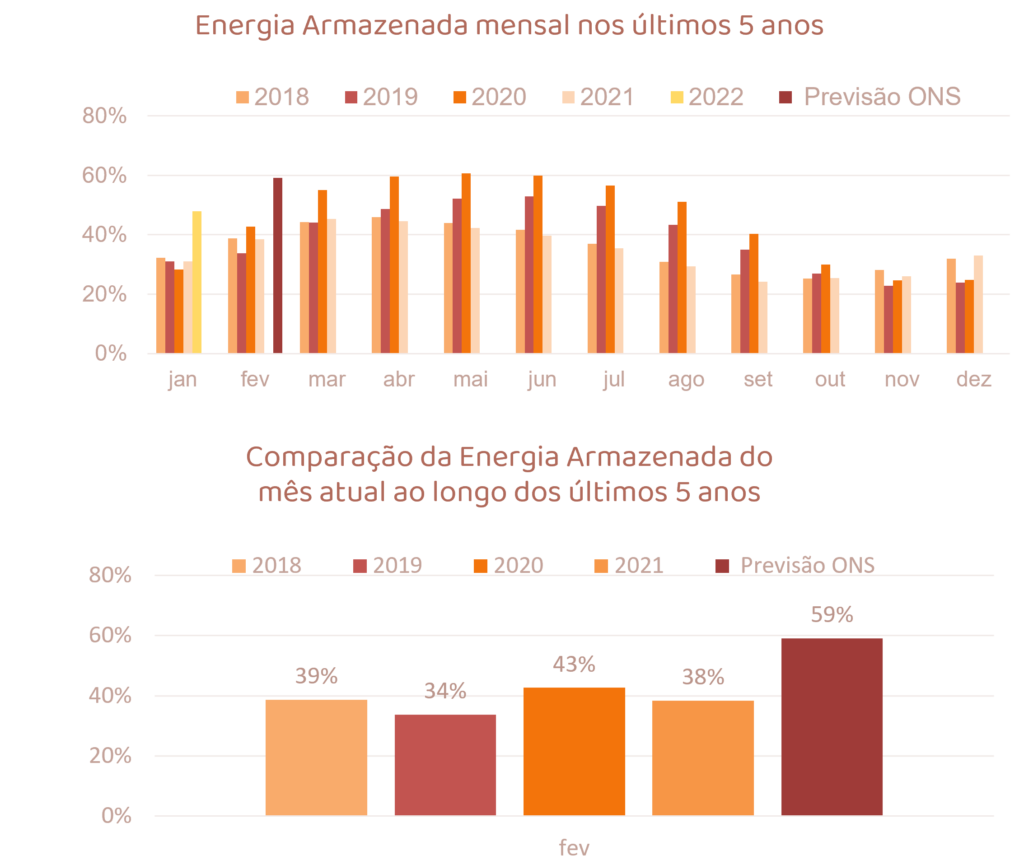 Para fevereiro de 2022, espera-se que as afluências fechem em torno de 106% da MLT para o sistema.