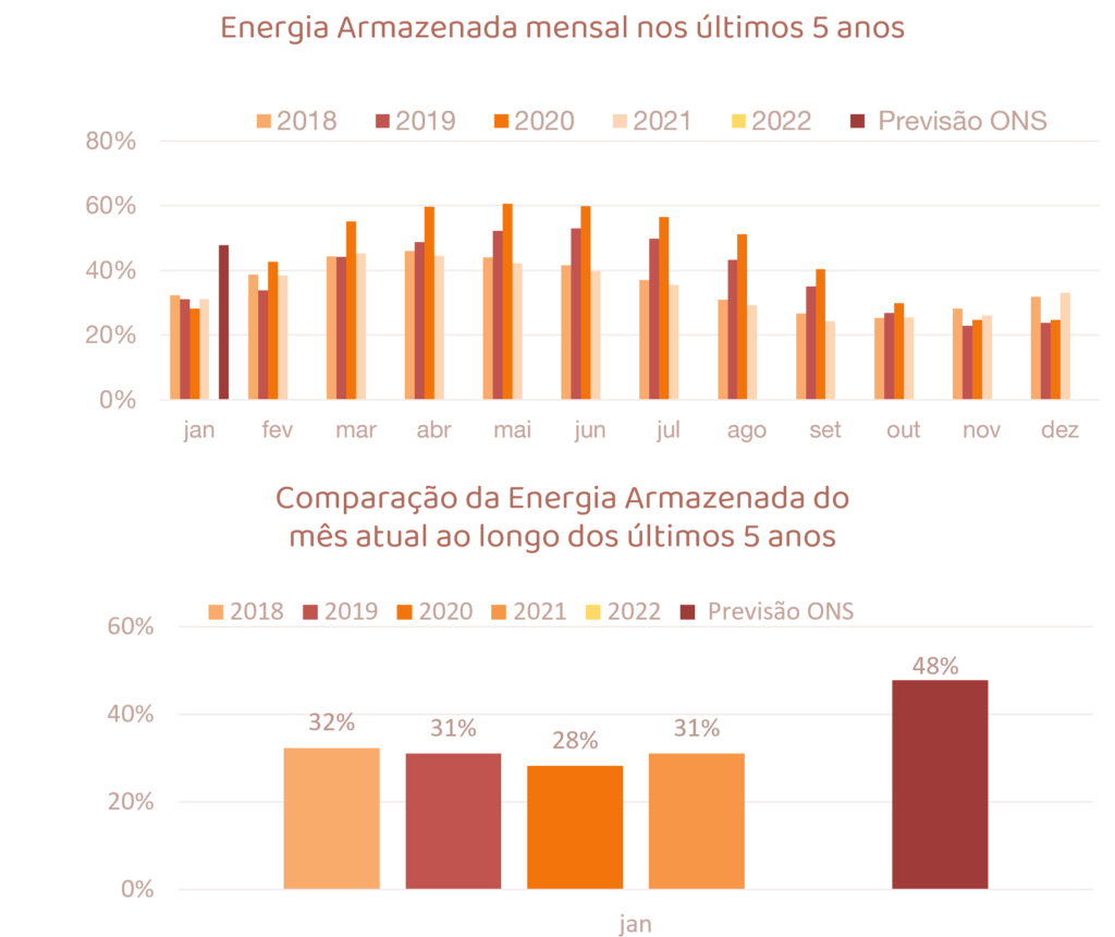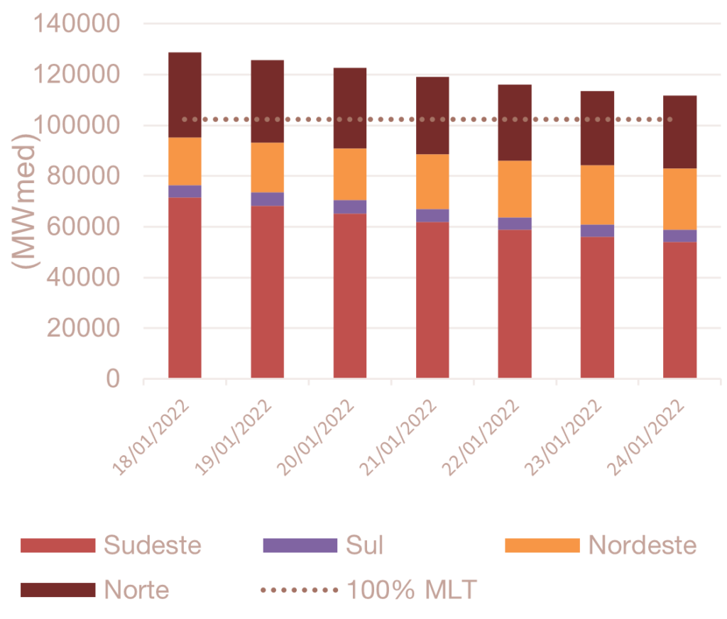 Para janeiro de 2022, espera-se que as afluências fechem em torno de 122% da MLT para o sistema.