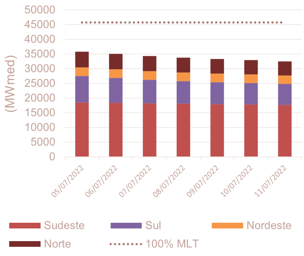 Para julho de 2022, espera-se que as afluências fechem em torno de 76% da MLT para o sistema.