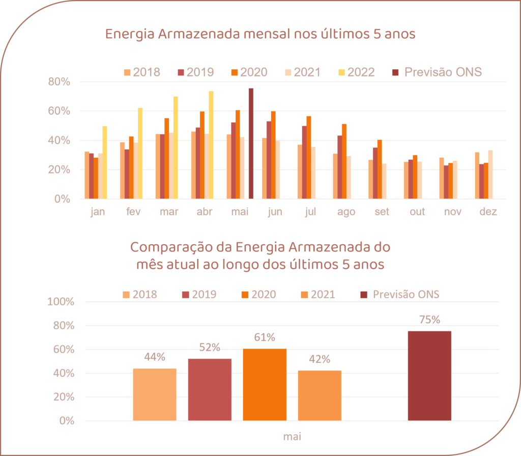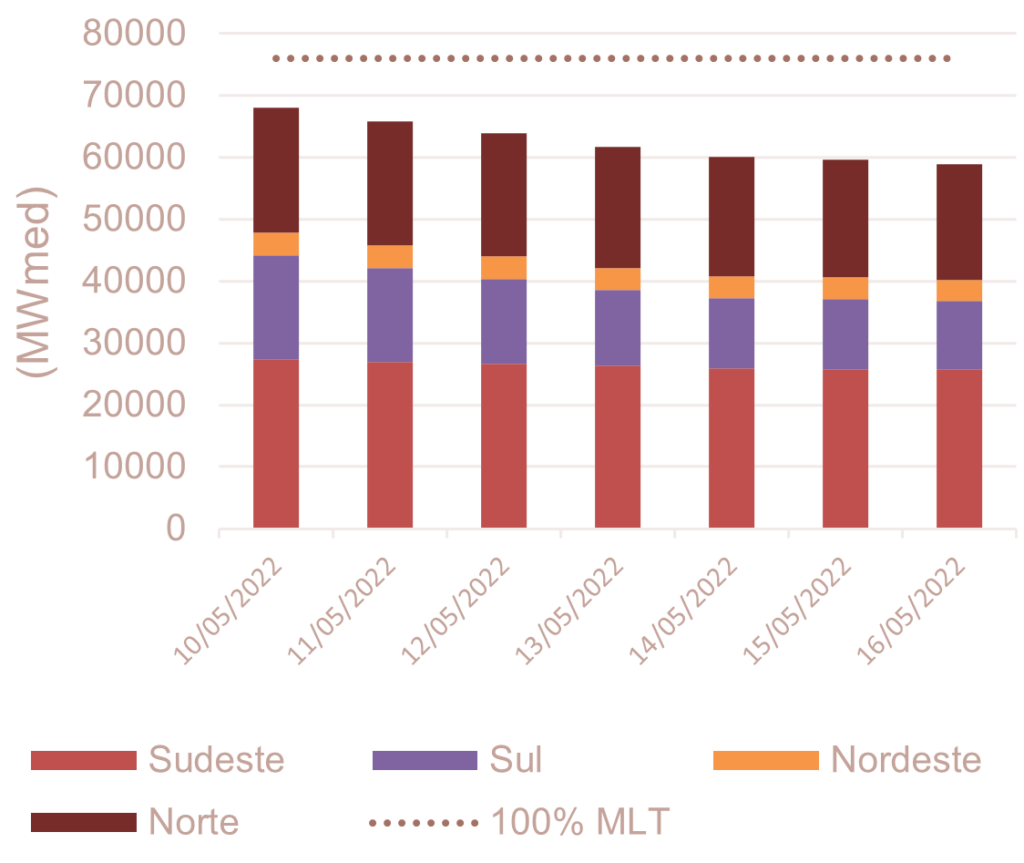 Para maio de 2022, espera-se que as afluências fechem em torno de 87% da MLT para o sistema.