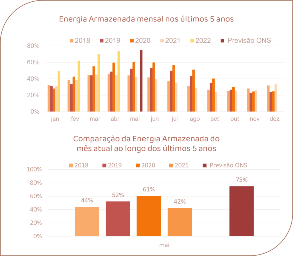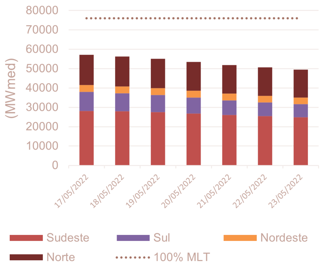 Para maio de 2022, espera-se que as afluências fechem em torno de 80% da MLT para o sistema.