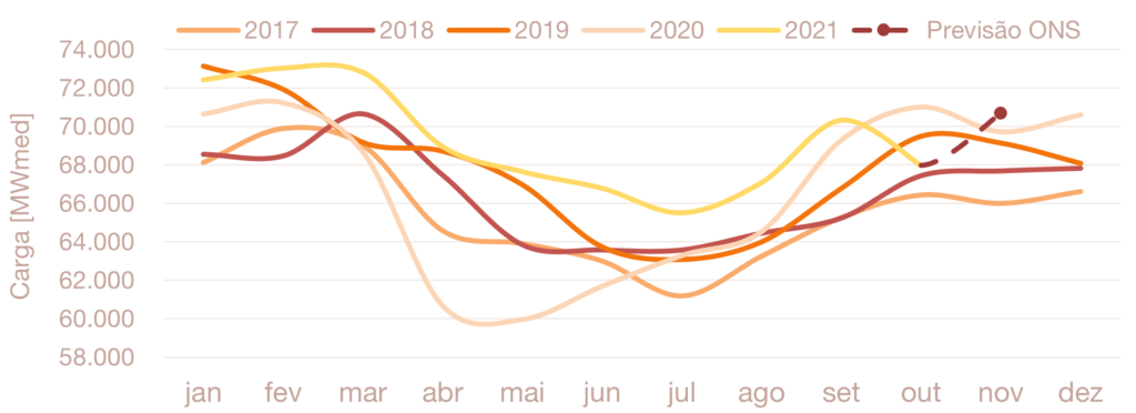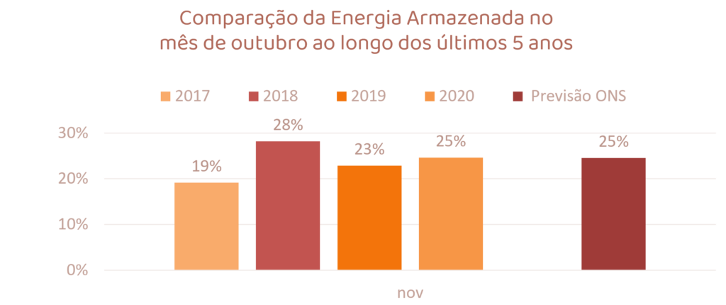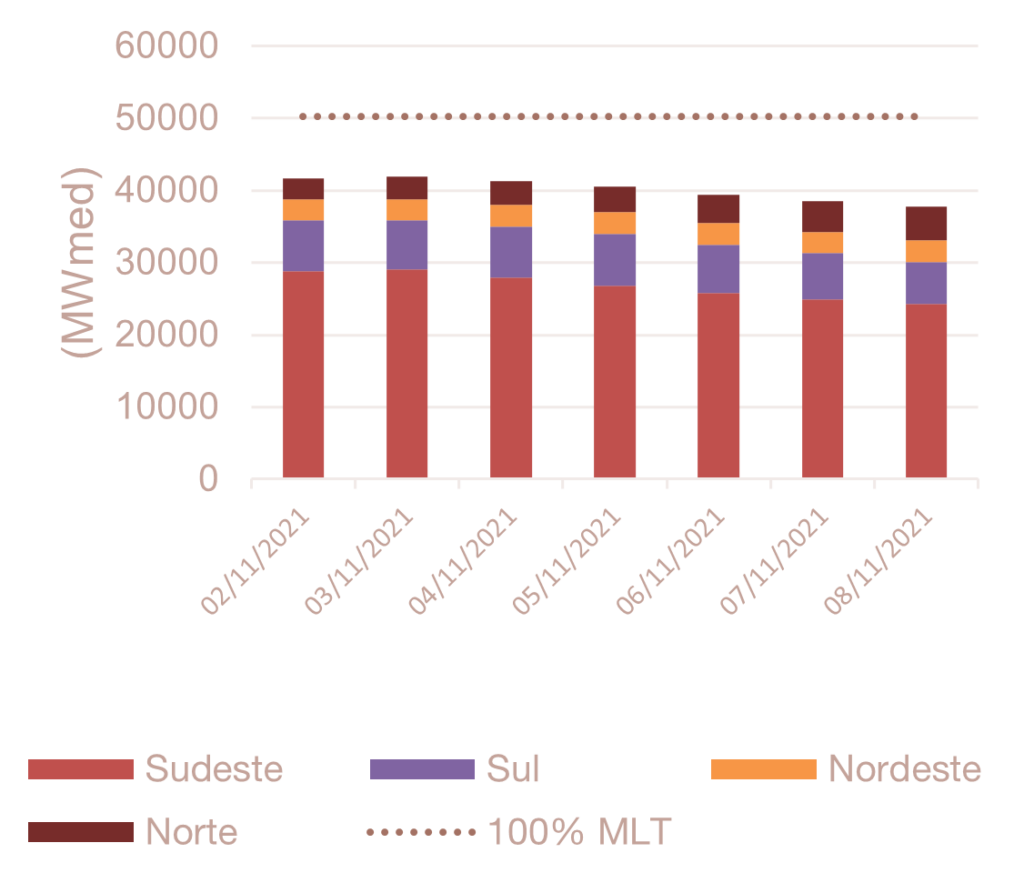 Para novembro de 2021, espera-se que as afluências fechem em torno de 99% da MLT para o sistema.