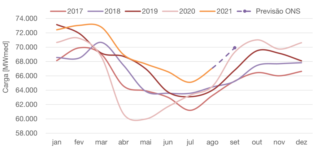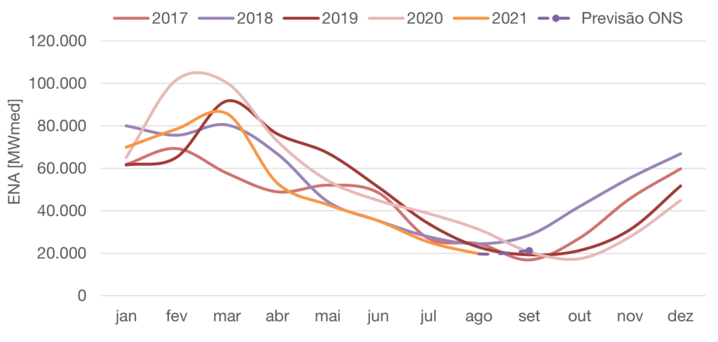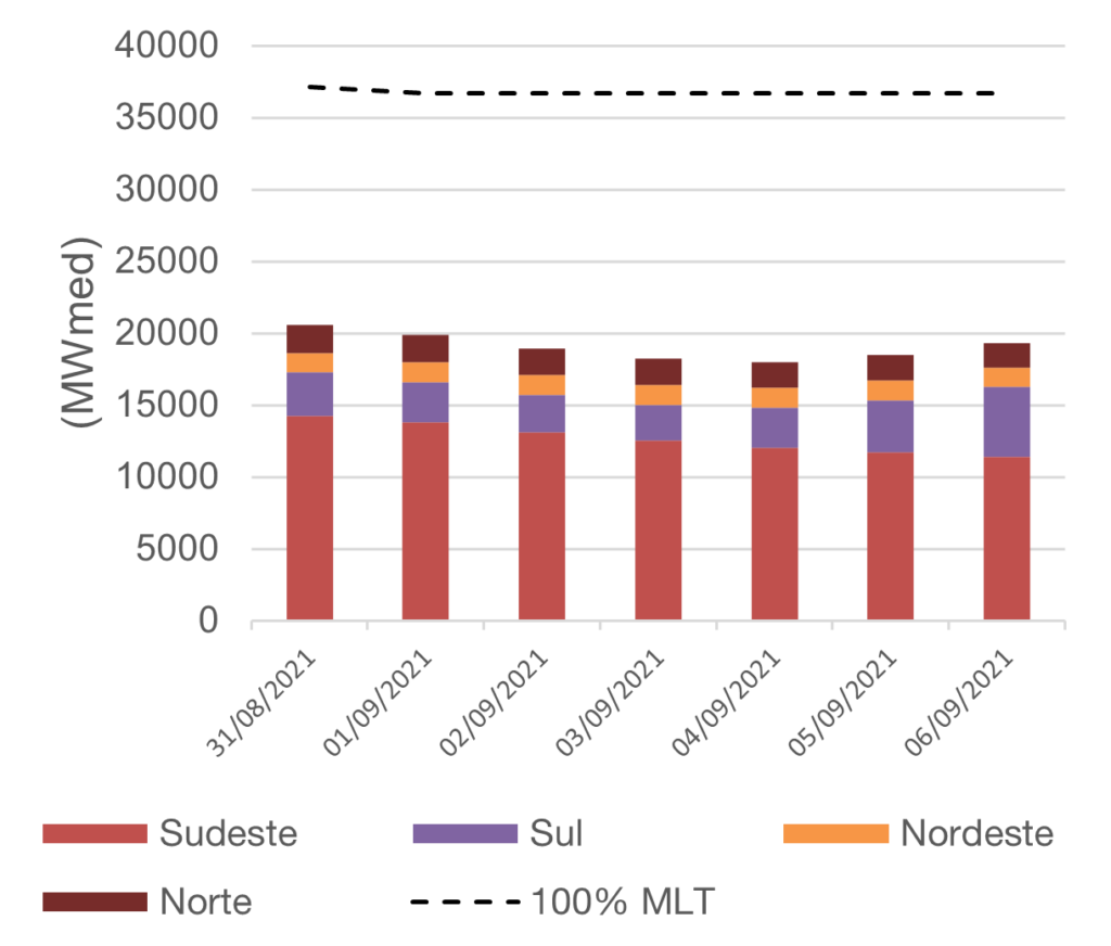 Para setembro de 2021, espera-se que as afluências fechem em torno de 59% da MLT para o sistema.