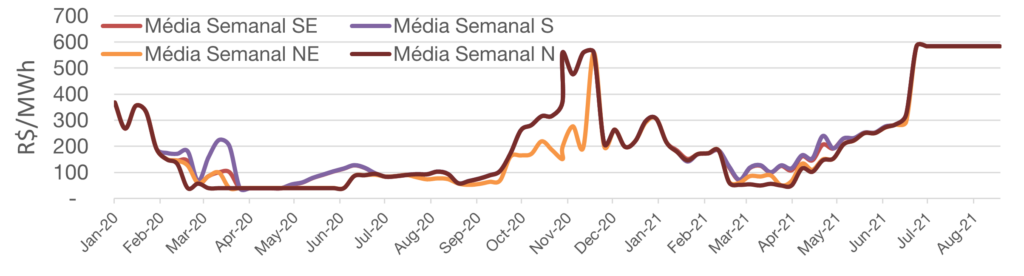 - O PLD tem se mantido no teto desde a primeira semana de julho.