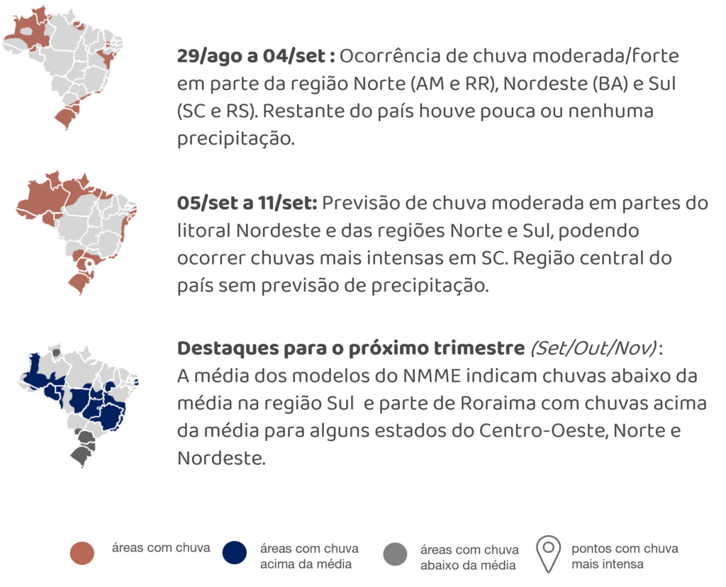 Na previsão de ENA diária para o Dessem, feita pelo ONS em 04 de setembro, verifica-se a tendência de aumento no volume de ENA para os próximos dias, alcançando 34 GWmed em 12/09.