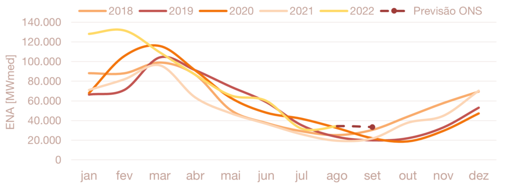Para setembro de 2022, espera-se que as afluências fechem em torno de 91% da MLT para o sistema.