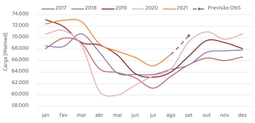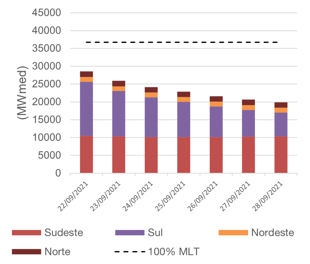 Para setembro de 2021, espera-se que as afluências fechem em torno de 63% da MLT para o sistema.